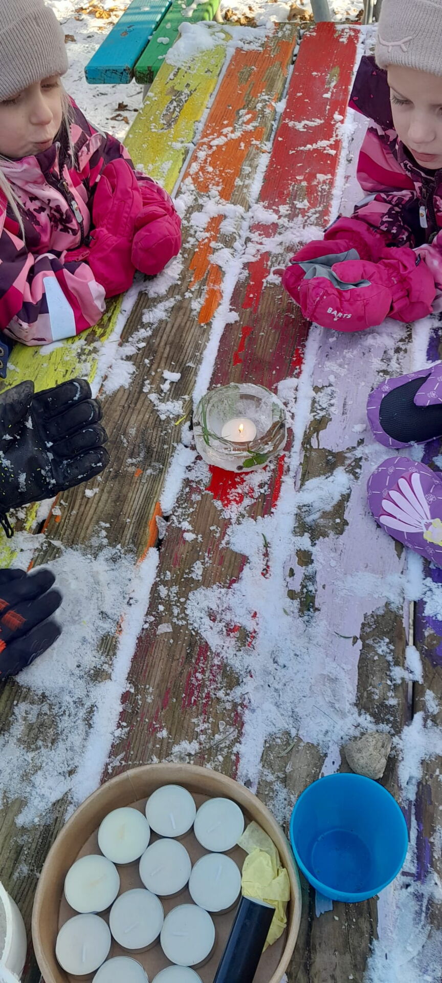 Der erste Schnee fiel und die Kinder haben ihn sehr genossen. Schneefiguren wurden gebaut, die Bobs und Tellerschlitten wurden ausgegraben, und zahlreiche Schlittenrennen fanden statt. Gemeinsames Spielen im Garten mit Fahrzeugen und das Herstellen von Eiskerzen standen auf dem Programm. So schnell, wie der Schnee kam, war er auch schon wieder weg. Das Spazieren und das Auskosten von "Matschpfützen" waren eine gute Alternative zum Schnee. Die Fledermäuse machten eine Runde mit dem Bus durch Lostorf und schauten sich das Feuerwehrmagazin an. Neben verschiedenen Bastelaktivitäten und Konstruktionsspielen standen bei den Drachen kreative Rollenspiele wie Einkaufsladen und Zoobesuche auf dem Tagesprogramm.