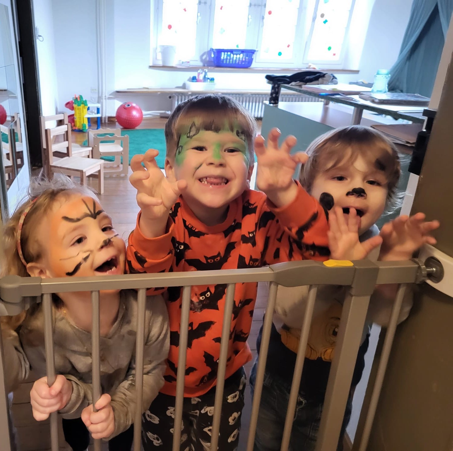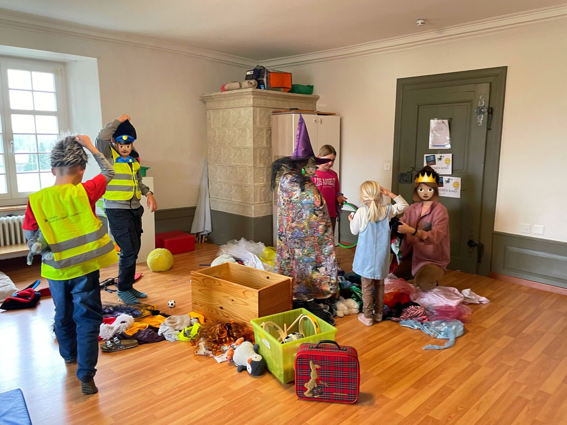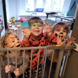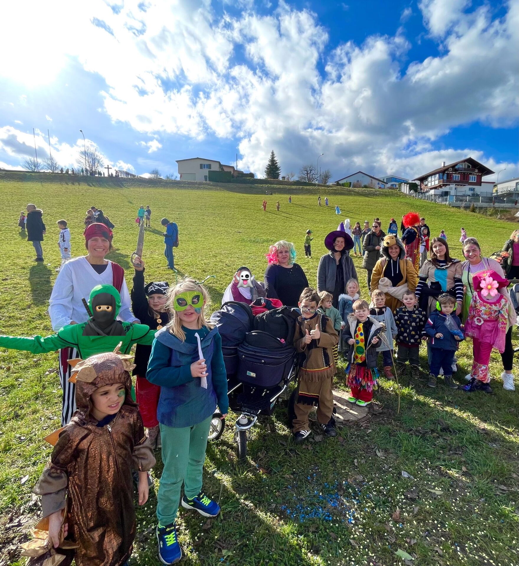 In der Kinderburg haben wir fleissig Fasnacht gefeiert. Die Kinder durften die ganze Woche verkleidet in die Kita kommen. Unter anderem haben sich die Drachen verkleidet und verschiedene Theater wie "die tollpatschige Räuberbande" gespielt. Bei den Fledermäusen wollten sich die Kinder schminken lassen. An den Kinderumzug gingen wir mit einem Teil der Kinder auch. Die Guggenmusik spielte, dies fanden die Kinder super interessant. Nach dem Umzug sammelten wir uns alle im Zelt und haben dort unser Zvieri gegessen und eine Konfettiparty gemacht.