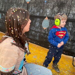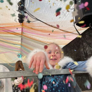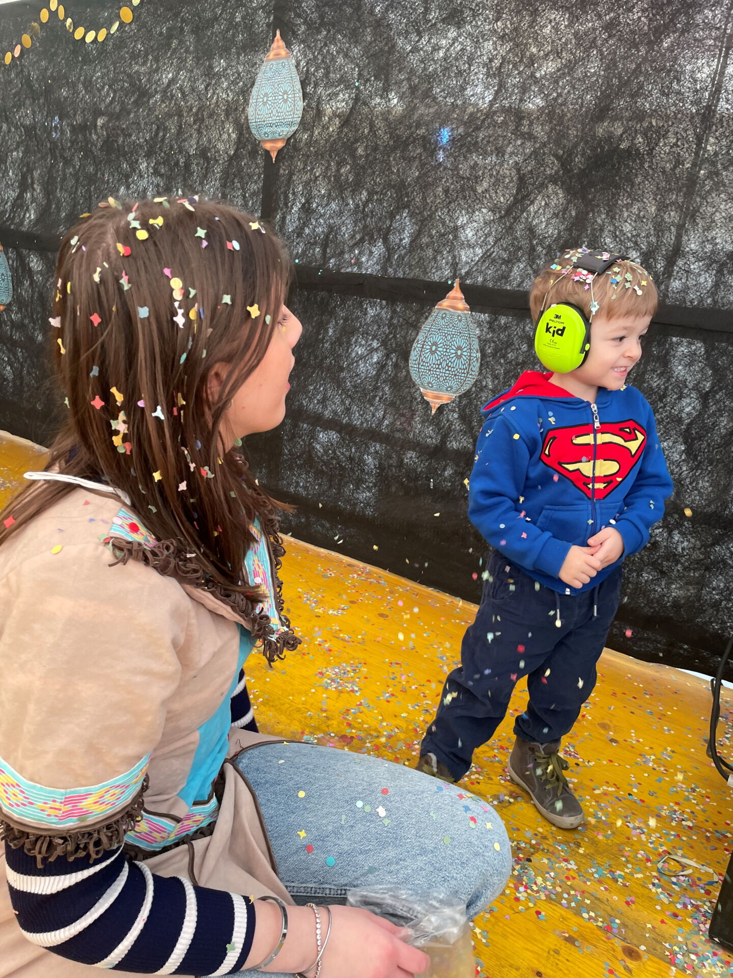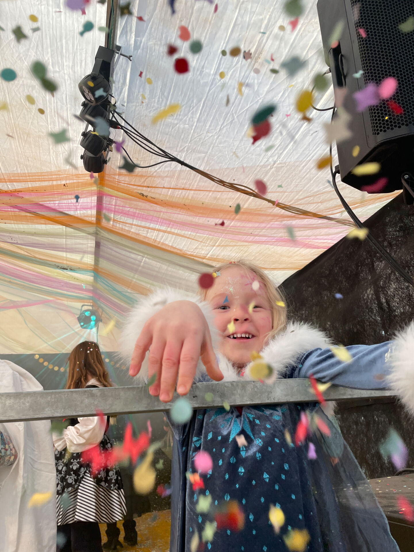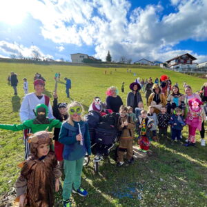 In der Kinderburg haben wir fleissig Fasnacht gefeiert. Die Kinder durften die ganze Woche verkleidet in die Kita kommen. Unter anderem haben sich die Drachen verkleidet und verschiedene Theater wie "die tollpatschige Räuberbande" gespielt. Bei den Fledermäusen wollten sich die Kinder schminken lassen. An den Kinderumzug gingen wir mit einem Teil der Kinder auch. Die Guggenmusik spielte, dies fanden die Kinder super interessant. Nach dem Umzug sammelten wir uns alle im Zelt und haben dort unser Zvieri gegessen und eine Konfettiparty gemacht.