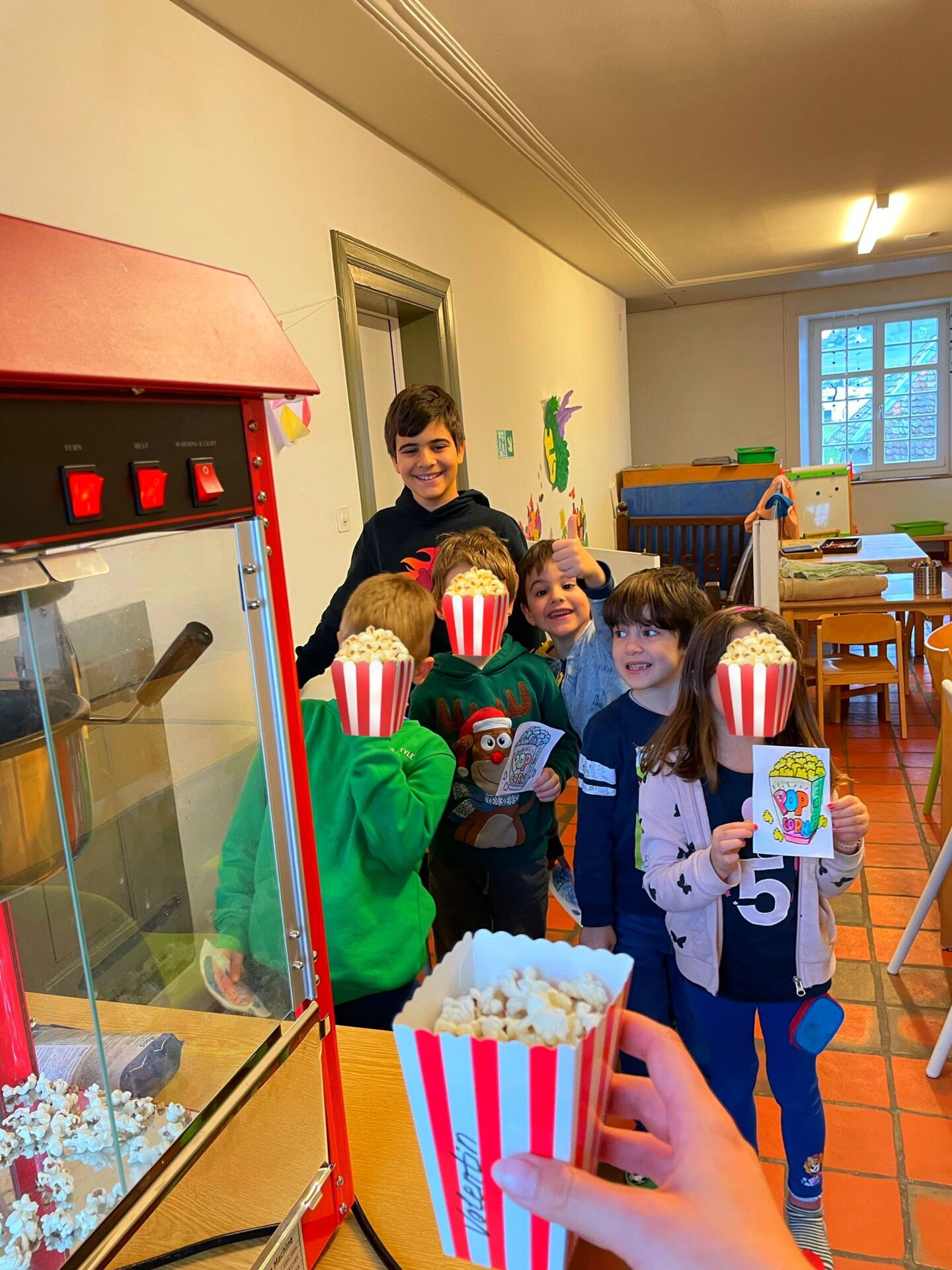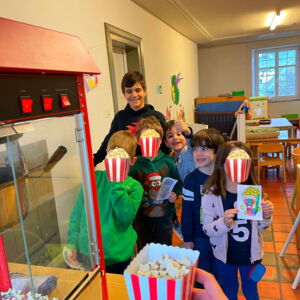 Die Drachen haben ihr Thema "Gefühle" mit einem Filmnachmittag abgeschlossen. Alle durften sich eine Tüte Popcorn schnappen und es sich bequem machen. Jetzt waren alle startklar, und der Film "Elemental", der Bezug zum Projektthema hatte, konnte beginnen.