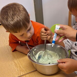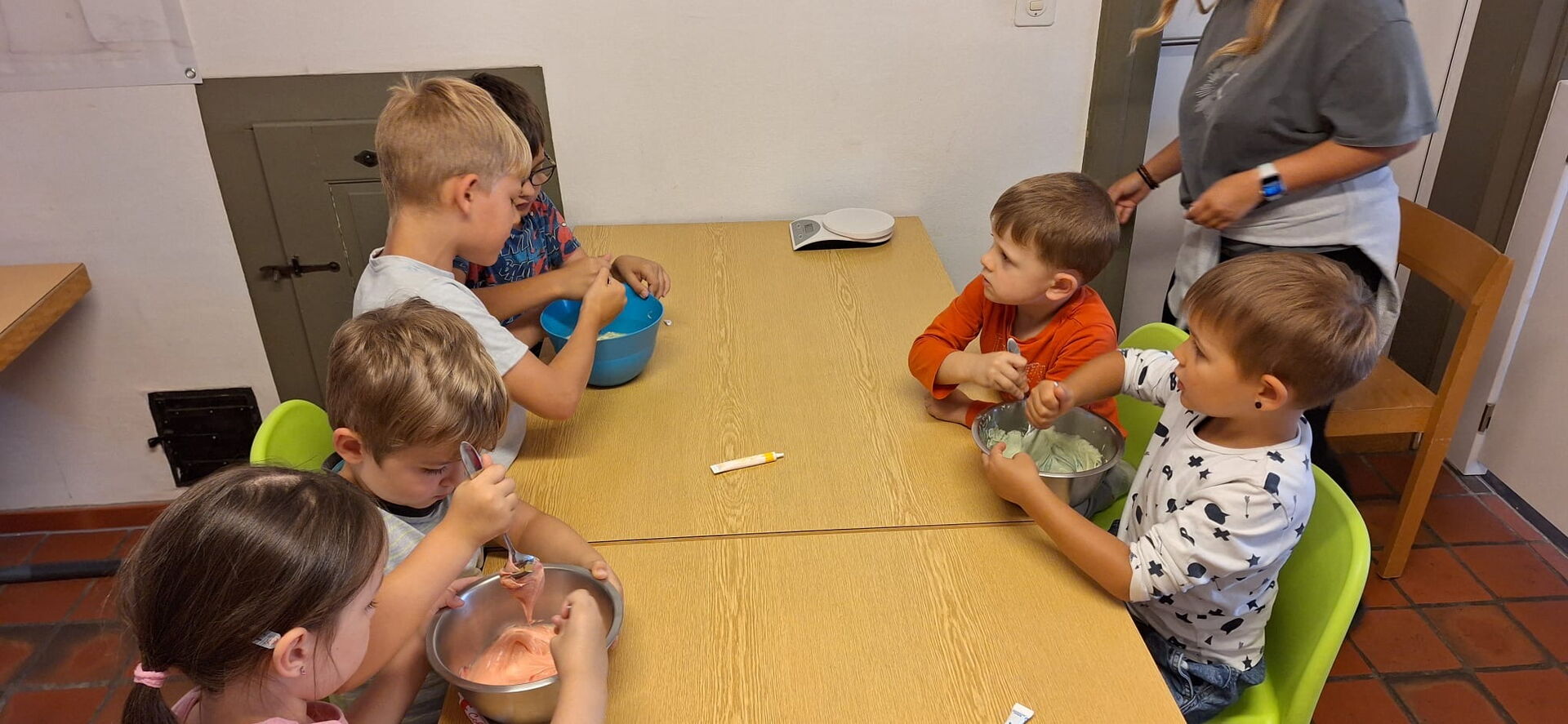 Um uns den Nachmittag zusätzlich zu versüssen, backten wir gemeinsam einen farbenfrohen Kuchen.