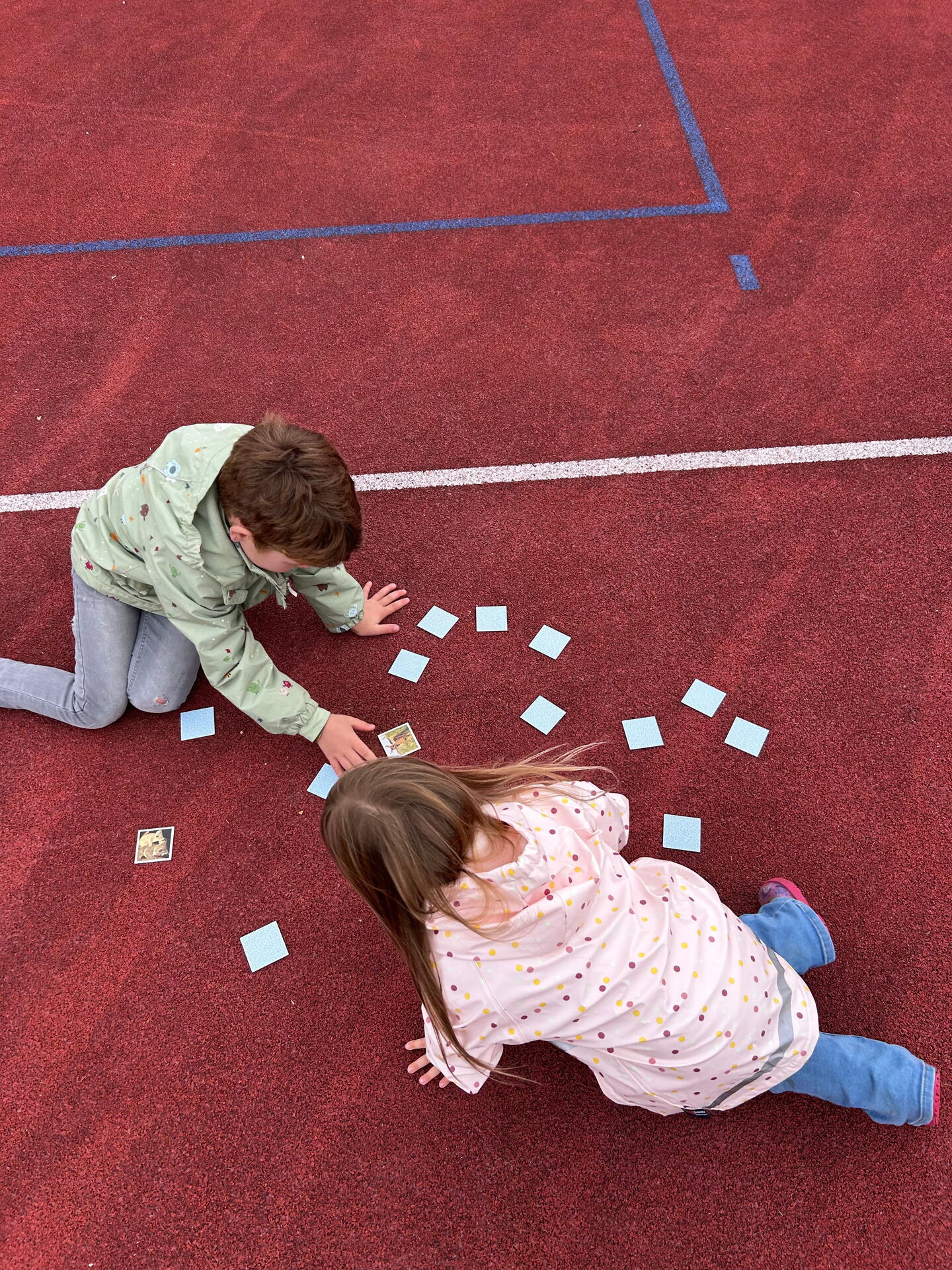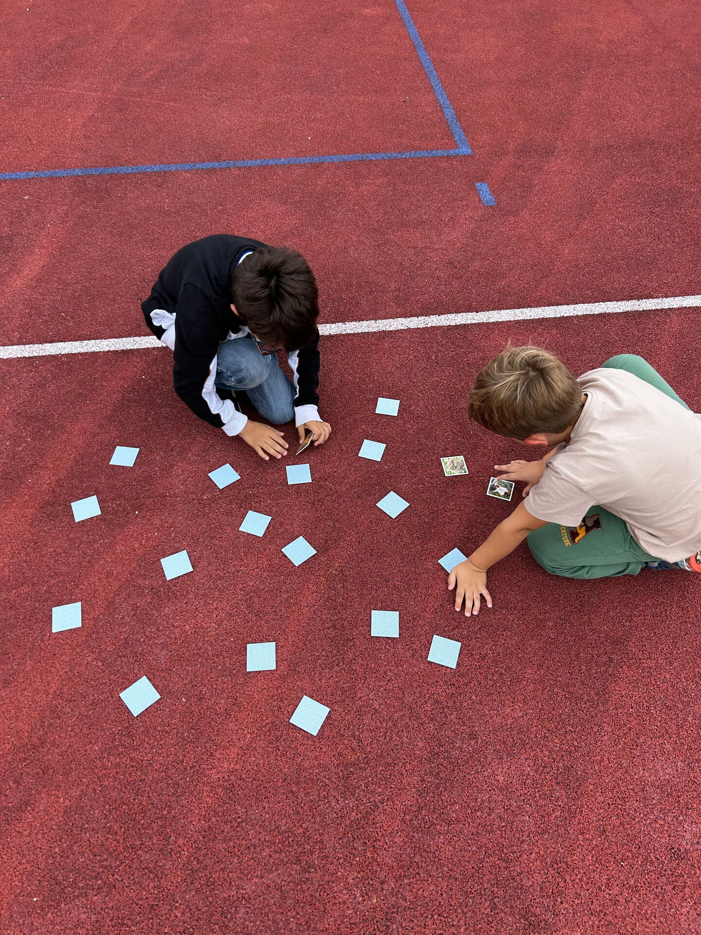 Auf dem Sportplatz fanden spielerische Stafetten statt. In Gruppen rannten die Kinder mit Puzzleteilen und Memoriekarten Hin und Her und versuchten die Teile zusammen zu setzen und Paare zu finden. 🏃♀️🏃
