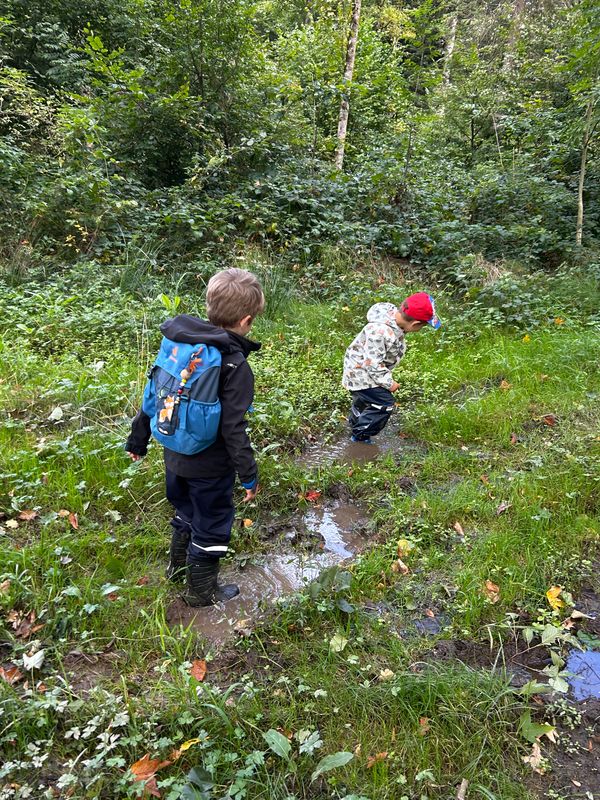 Während die "grossen" Kindergarten- und alle Schulkinder auf der Herbstwanderung waren, nutzten die Drachen die Gelegenheit, den Tag ebenfalls in der Natur zu verbringen. Die Sonne begleitete uns und der Regen in den Tagen davor ermöglichten Schlamm und Wasserspiele 💦