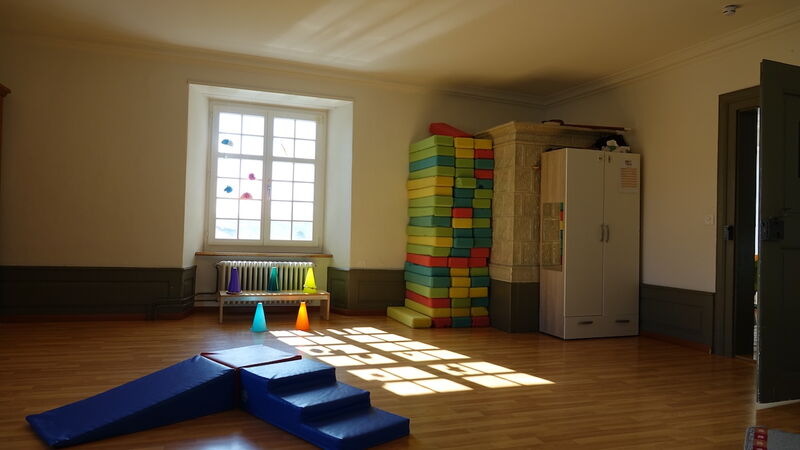 Im «Gumpi» darf nach Herzenslust getobt und gross gebaut werden. Der Raum bietet sowohl den Fledermäusen am Morgen als auch den Drachen am Nachmittag eine ideale Umgebung für wilde oder fantasievolle Aktivitäten.